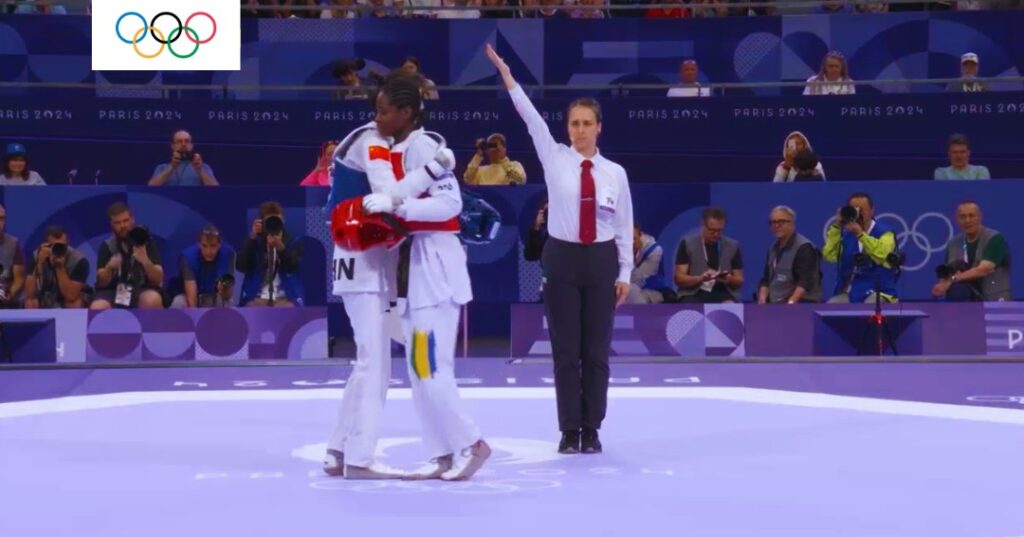 Tout avait pourtant bien commencé pour la Gabonaise qui, dès le début, marque deux points. Cependant, il était imprudent de sous-estimer la championne olympique en titre qui revient au score avant de remporter le premier round sur un score de 6-2.