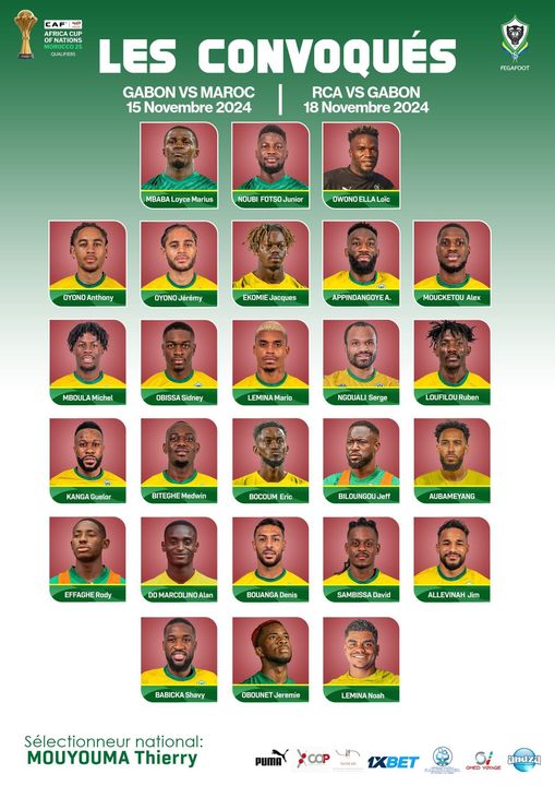 Ces matchs se dérouleront les 15 et 18 novembre prochains, respectivement face au Maroc à Franceville et contre la République Centrafricaine à Johannesburg, en Afrique du Sud.