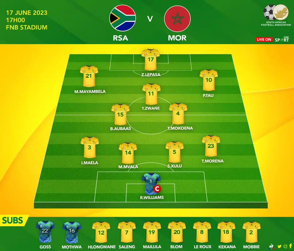 Les compos d’Afrique du Sud-Maroc